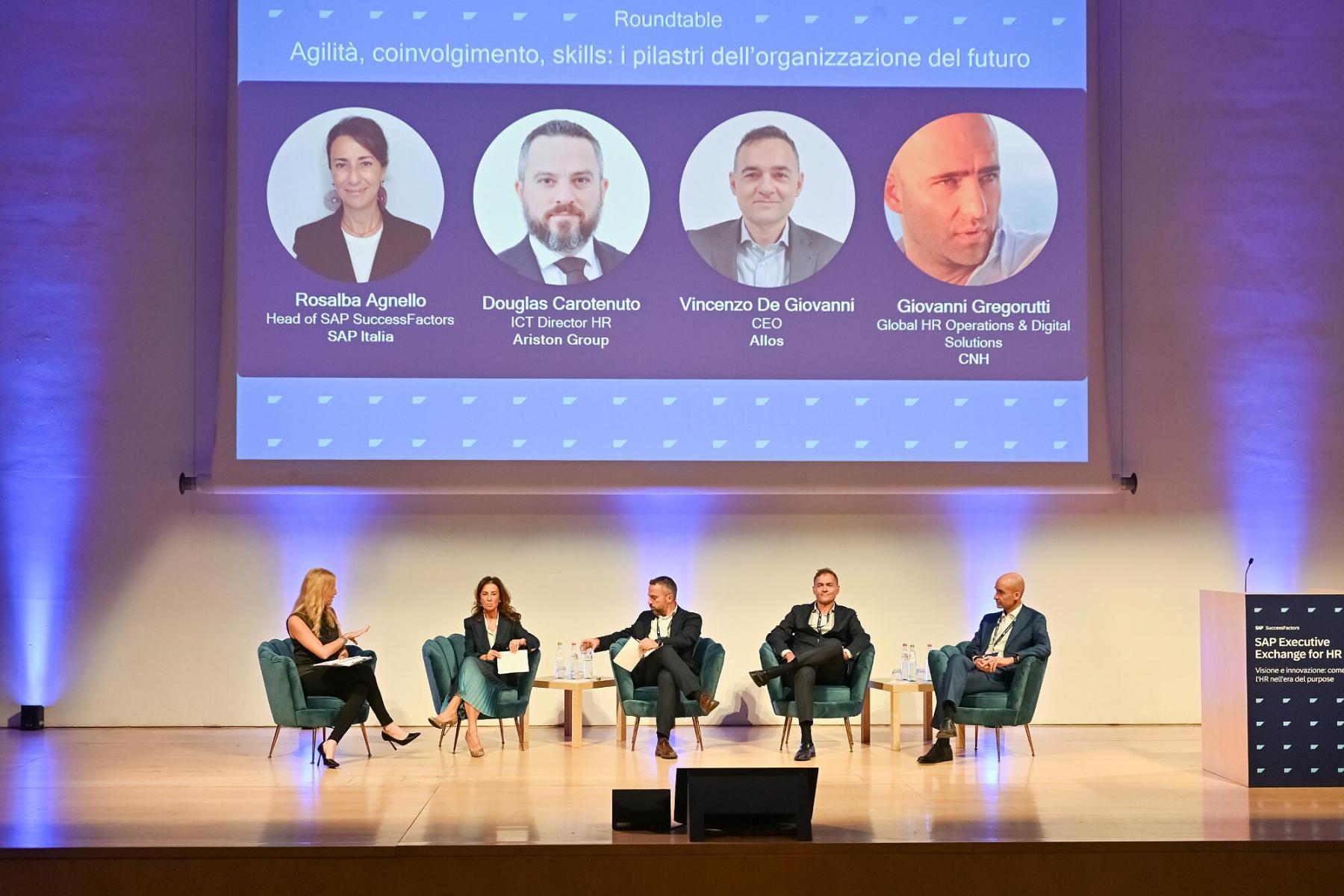 Un messaggio che ha fatto da ponte verso la tavola rotonda sull’organizzazione del futuro, moderata da Manuela Donghi, e animata dagli interventi dei nostri clienti Giovanni Gregorutti (CNH), Douglas Carotenuto (Ariston Group) e da Rosalba Agnello (SAP SuccessFactors) e Vincenzo De Giovanni (Allos).